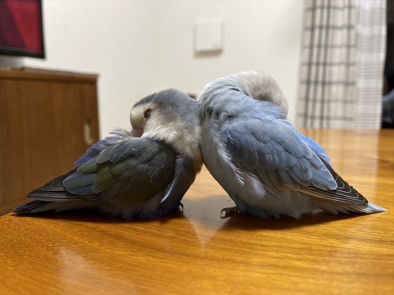 2024.07.12 お友達 お友達紹介 その4 コテツくんです。愛称はコっさん 体は、かなり大きいが慎重派でかなりの食いしん坊…そしてドジ。フクと仲良くいつも一緒にいたのですがフクが旅にで出てしまいその後は退屈そうでした。 フクと茶箪笥を探索中。二羽はいつも楽しそう。フンを落として去っていくので困りますが… 二羽でお昼寝中。とても良いコンビでいつも一緒で見てて和んでたのですが…あぁ〜フクよぉ…